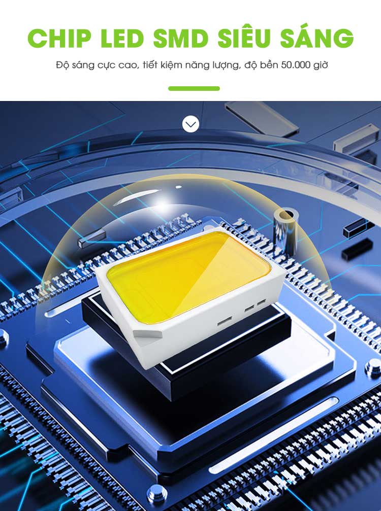 Sử dụng chip LED: SMD5730 - Tuổi thọ 50.000 giờ