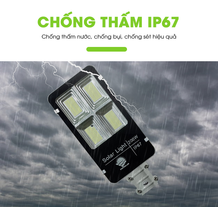 Đèn năng lượng mặt trời TS-78200K4 được đánh giá là sản phẩm đèn năng lượng mặt trời 200W tốt nhất ở thời điểm hiện tại. Đèn có thiết kế chắc chắn, sang trọng, khả năng chống nước IP67 cao cấp và có thời gian sử dung hơn 12 giờ, chính là sự lựa chọn tuyệt vời dành cho các gia đình, doanh nghiệp, công ty. TS-78200K4 là giải pháp giúp giảm chi phí sản xuất, chi phí tiền điện và góp phần bảo vệ môi trường thiên nhiên hiệu quả