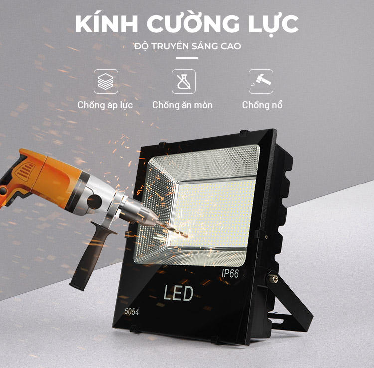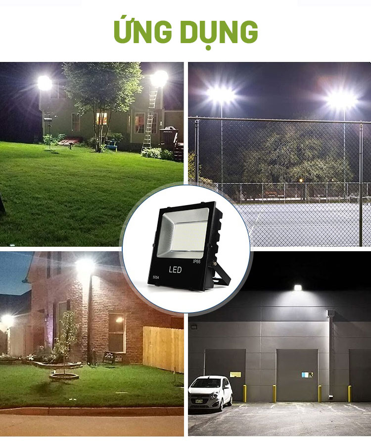 Đèn LED 100W: Có công suất 100W, phù hợp chiếu sáng trong nhà và ngoài trời. Tuổi thọ gấp 5 lần đèn metal halide truyền thống và tiết kiệm đến 80% điện năng (50.000 giờ).