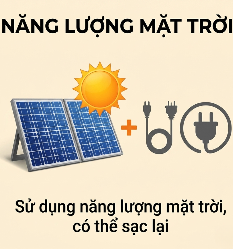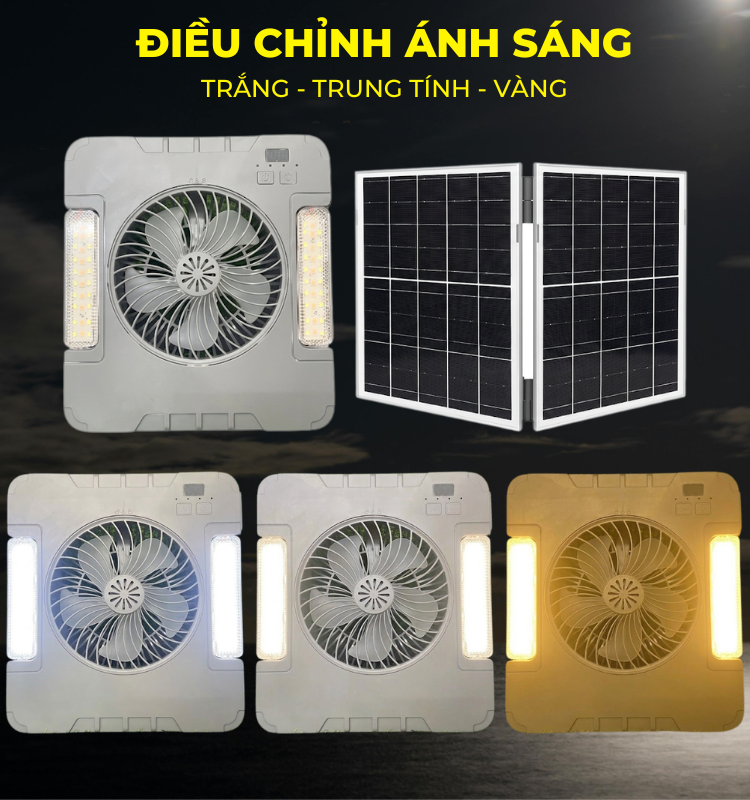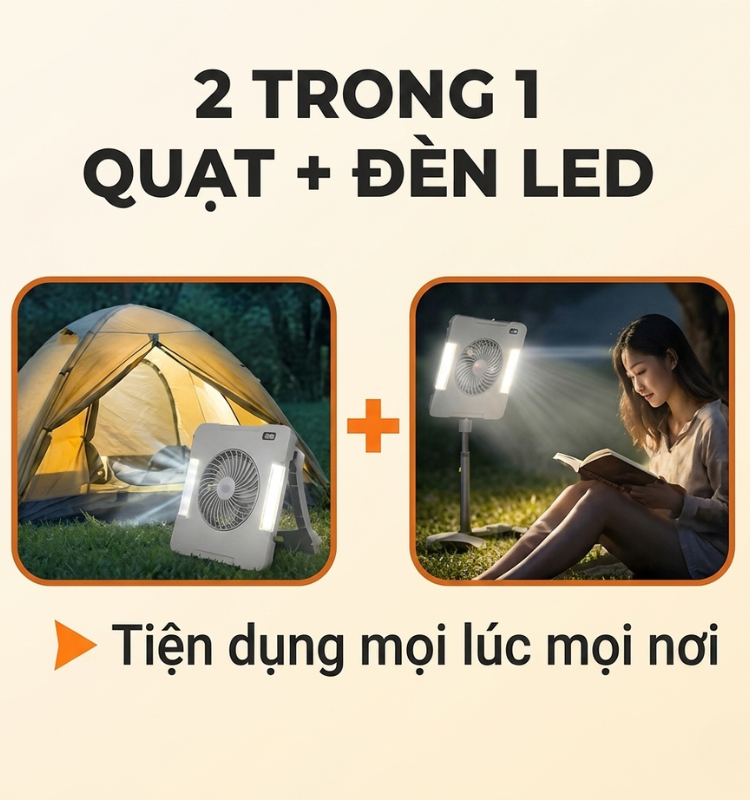 Quạt năng lượng mặt trời di động tích hợp đèn LED là giải pháp tiện lợi cho cả chiếu sáng và làm mát mọi lúc mọi nơi. Sản phẩm sử dụng nguồn năng lượng sạch, có thể sạc lại, hoạt động bền bỉ với chuẩn chống nước IP65, phù hợp dùng ngoài trời. Đèn LED cho ánh sáng rõ, tuổi thọ cao lên đến 50.000 giờ và có thể điều chỉnh linh hoạt. Thiết kế gọn nhẹ, đi kèm tấm pin gấp gọn giúp dễ dàng mang theo khi đi du lịch, cắm trại hoặc sử dụng khi mất điện. Đây là lựa chọn thông minh cho cuộc sống hiện đại, tiết kiệm và chủ động nguồn điện.